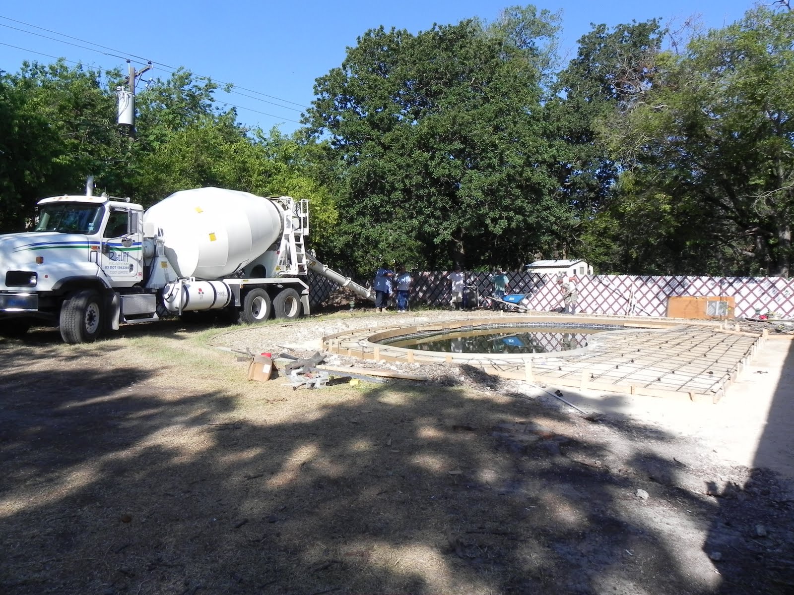 The guys worked on finishing the framing of the pool. Kenny the Inspector had to come and inspect before they are allowed to pour tomorrow. Unfortunately they did not get the green light. Kenny wants the risers put under the row bar. He will be back tomorrow at 9am before they pour.